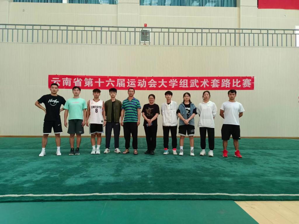20221116日至2023317日,由云南省体育局、云南省教育厅、云南省总工会主办,玉溪市人民政府承办的云南省第十六届运动会第三阶段大学组的比赛在玉溪市举行。公司共有足球、篮球、排球、田径、武术、羽毛球、乒乓球、跳绳8支代表队,286名同学参加了本次赛事。
