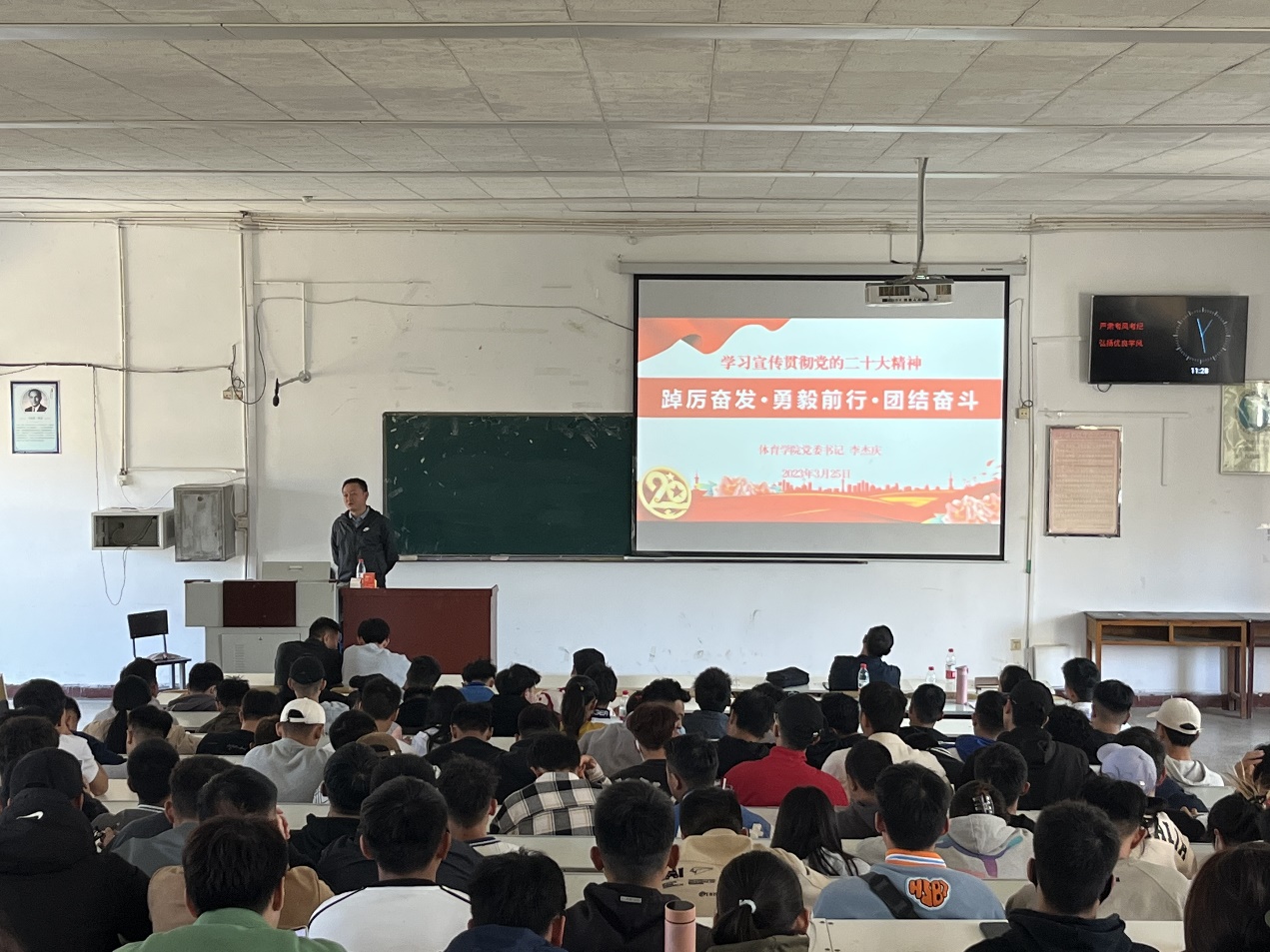 为深入学习宣传贯彻党的二十大精神,全面贯彻落实习近平新时代中国特色社会主义思想,引导公司师生发挥先锋模范作用。3月25日,公司党委书记李杰庆以“踔厉奋发·勇毅前行·团结奋斗”为主题,多维度、深层次给公司师生上了一堂主题鲜明、内容丰富的专题报告会,公司大三、大四年级员工和全体辅导员老师参加。