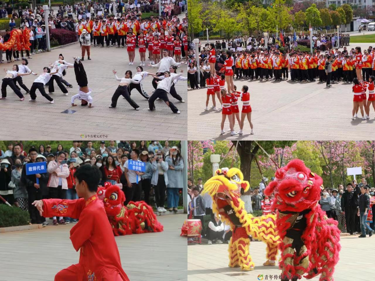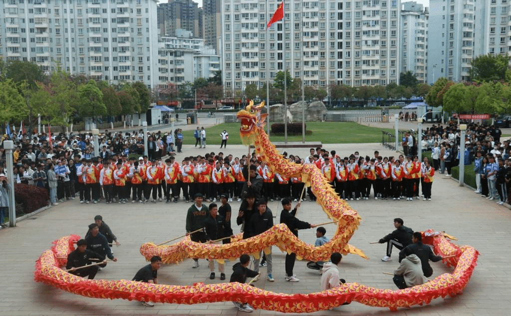 开幕式上,mjm世界杯官网组织了在2022年中国老员工啦啦操比赛中收获团体总分第一名的啦啦操代表队、公司街舞社和在云南省第十六届运动会上为公司夺得5金6银3铜的武术代表队进行了精彩的表演,体现了云农学子朝气蓬勃的青春激情和活力。李永和董事长为舞龙节目的两条巨龙点下寓意着“美好、繁荣与富强”的点睛之笔。