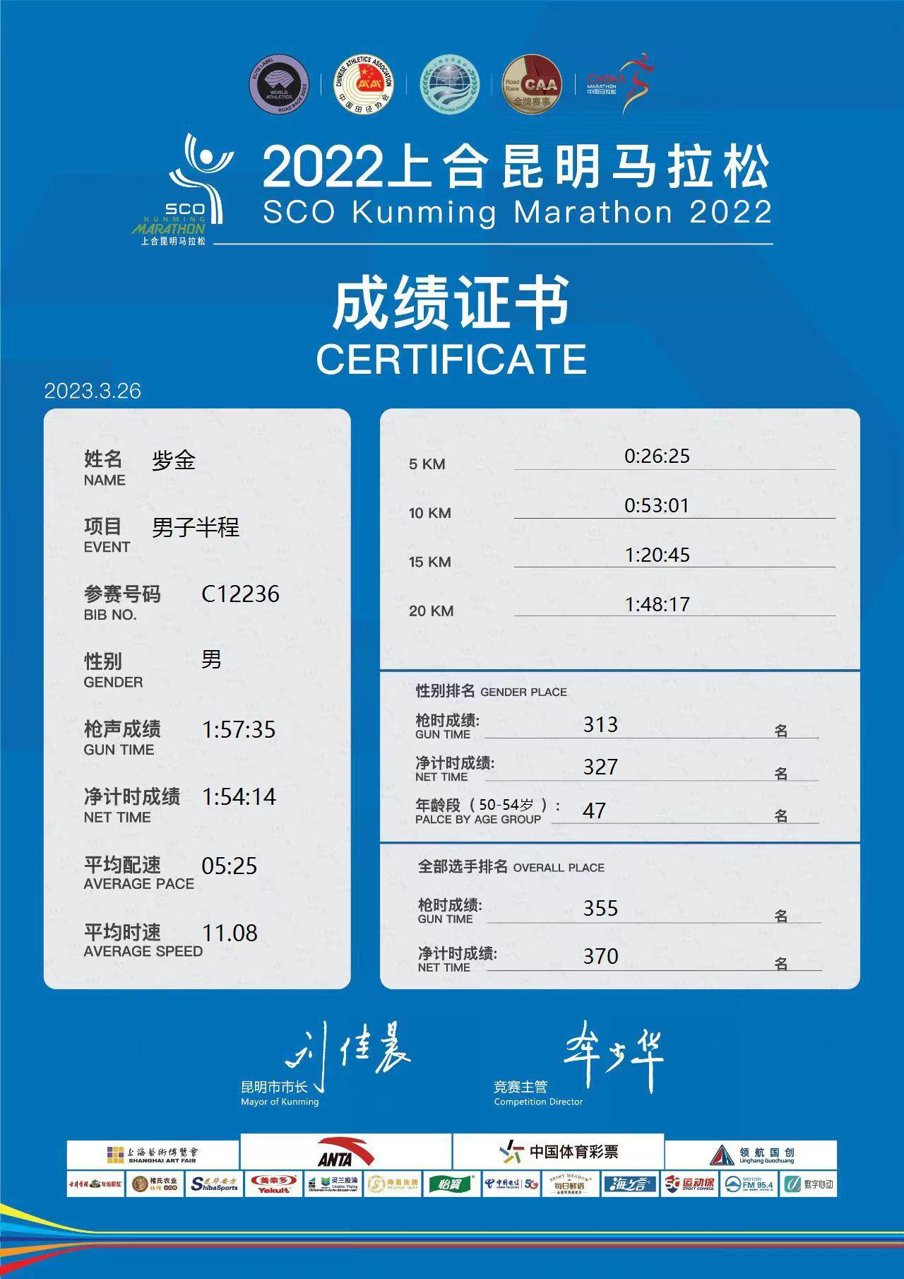 3月26日,一场“热动”春城的2022上合昆明马拉松在滇池湖畔鸣枪开跑,mjm世界杯官网的㱔金老师参加男子半程马拉松,以01:54:14的成绩,从一万多名跑者中脱颖而出,获得327名(50—54年龄段47名)。
