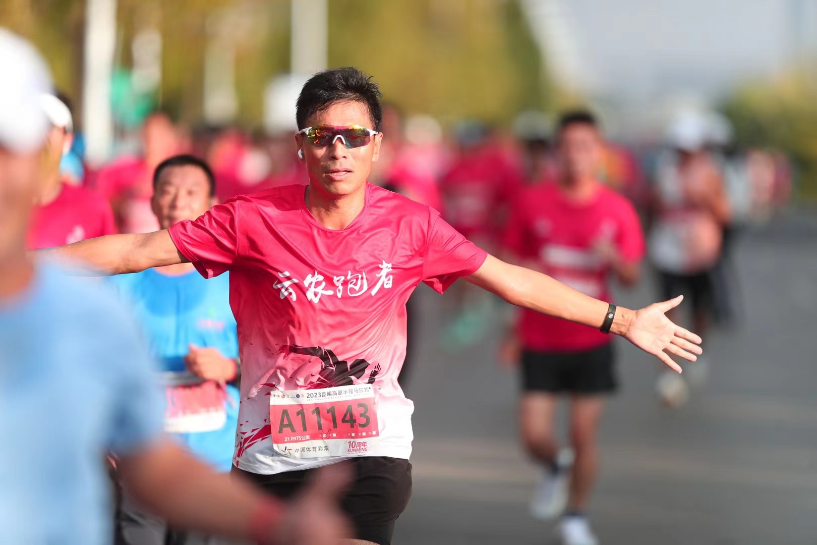 52岁的㱔金老师以1:34:24的成绩获得男子组半程马拉松比赛第286名,并创造个人历史最好成绩。㱔金老师校内致力于推广长跑文化,全国首创将“校园迷你马拉松”进课堂、进赛事、进社团,融入课程思政,校外带队参加了40余场马拉松赛事,用自己的实际传动传递奔跑的力量,诠释坚持不懈的马拉松精神。