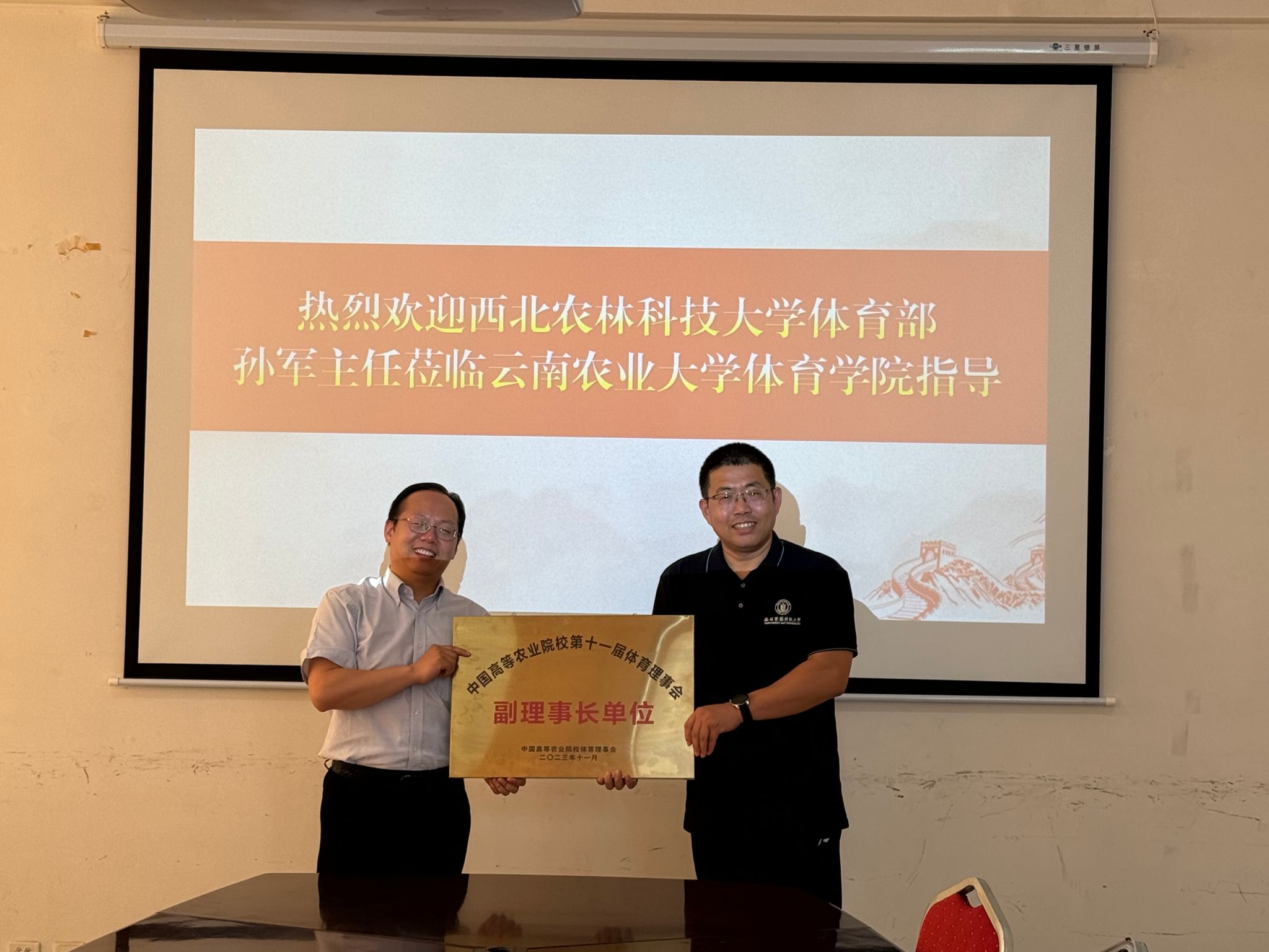 双方在mjm世界杯官网四楼会议室进行交流座谈,mjm世界杯官网经理杨健科简要介绍了公司的基本情况。孙军主任从公体课、高水平运动队等方面介绍了西北农林科技大公司园体育的开展情况。双方就体育专业的设置申报、体育教研教改、高水平运动队建设与管理及集团体育文化建设等方面进行了深入的探讨和交流。双方一致认为,通过加强交流与合作,可以共同推动体育教育事业的发展,为员工提供更加优质的体育教育资源和服务,加快公司体育文化建设,促进公司高水平体育运动队发展。随后,孙军主任代表中国高等农业院校体育理事会,为mjm世界杯官网授予了中国高等农业院校第十一届体育理事会副理事长单位的称号。