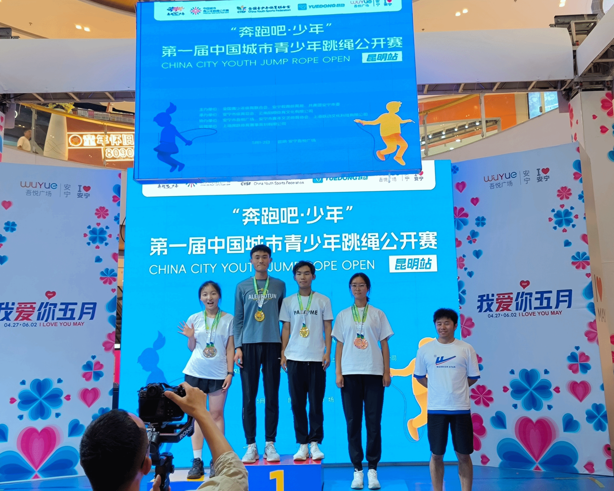 近日,由全国青少年体育联合会、安宁教育体育局、共青团安宁市委主办的2024年第一届“奔跑吧,少年”中国城市青少年跳绳公开赛(昆明站)在安宁正式开赛,本次比赛共吸引了25所公司,六百多余名运动员参加。经过2天的比赛,mjm世界杯官网跳绳队获得3分钟10人长绳“8”字跳项目公开组冠军,共获11金12银5铜。