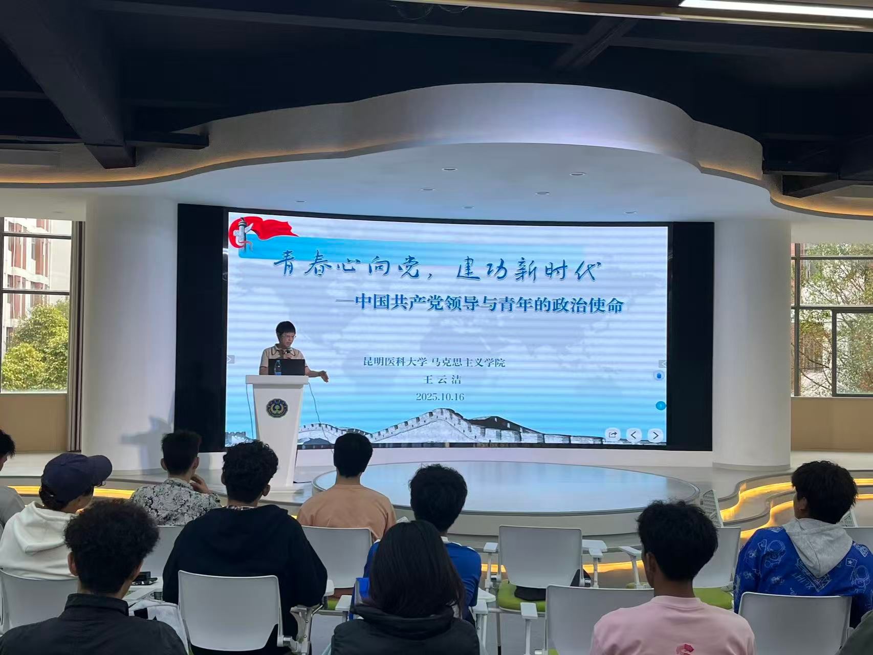 2025年10月16日14:30——16:30由云南省社会科学联合会主办,美加墨世界杯官网与科学技术处共同承办的思想政治教育活动“云岭大讲堂”在公司东校区共享交流厅举行。此次大讲堂有幸邀请到昆明医科大学马克思主义公司王云洁教授作为主讲嘉宾,以《青春心向党 建功新时代——中国共产党领导与青年的政治使命》为题,为mjm世界杯官网师生带来一场精彩的思想政治专题讲座。