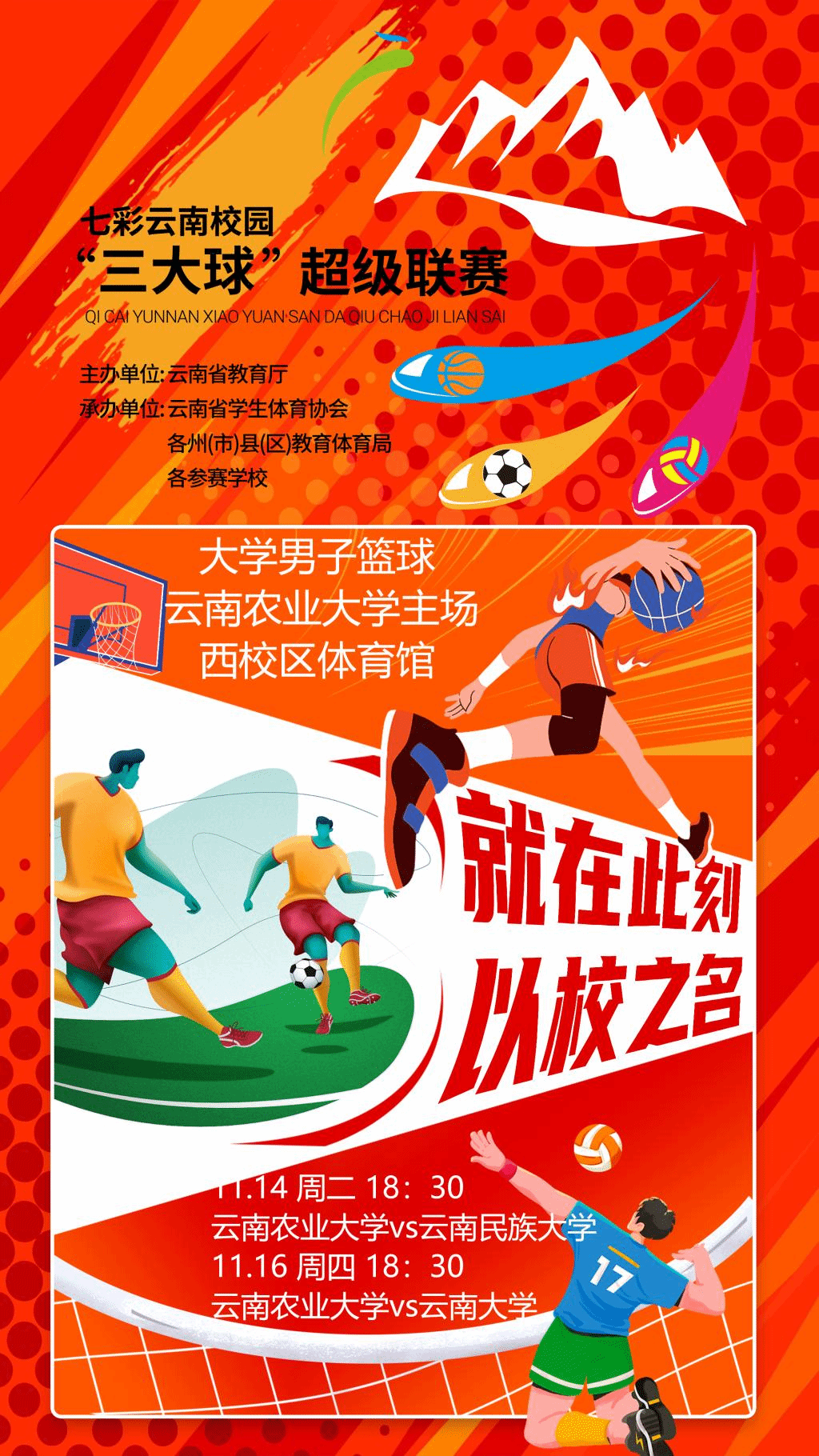 七彩云南校园“三大球”超级联赛大学男子篮球mjm世界杯官网主场赛事预告